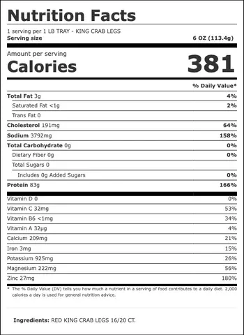 Our King Crab Legs are a luxurious treat, known for their sweet, succulent meat and impressive size. These premium crab legs are prepared with care and contain no added salt. However, their saltiness can vary slightly depending on their natural environment and the preparation process.